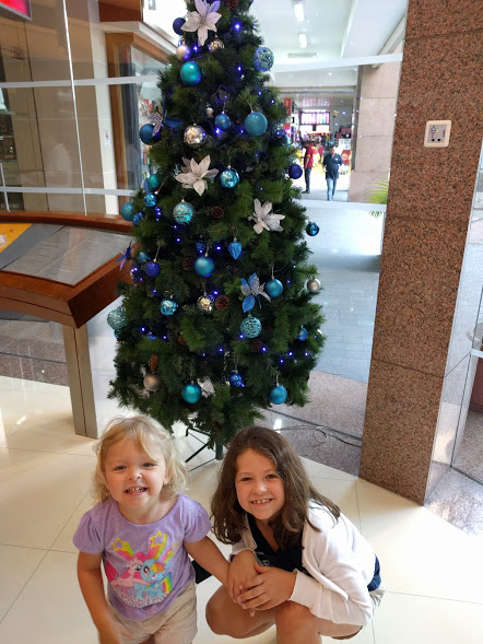 On our first trip, we stayed in a great Airbnb apartment in the residential area to the west of the city. This time around, I wanted to put us more in the center of things, so we stayed at an Airbnb in an area called Bugis. The apartment wasn't as nice as the first one, but it was still two bedroom, two bath, and there was a Christmas tree in the lobby which made the girls happy.