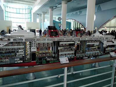 We returned our rental car and headed to the cruise terminal where we met up with Mom and Dad. The security line took forever, but the actual Disney check in was quick and easy. The girls admired the scale model of the ship.