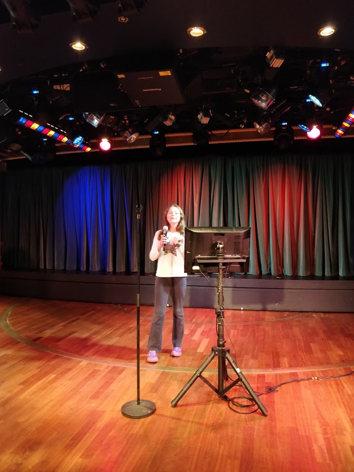The second night of the cruise was also the first night of Hanukkah, so the girls got dressed up in blue and white and we went to the service they were having before dinner.