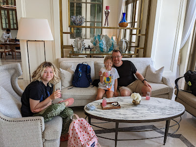 The hotel lobby was lovely, and since we were early, we spent a bit of time waiting for one of our rooms to be ready. We had booked a sunset villa for me and Jeff, and that was where we were planning on spending most of our time, so I had just gotten a regular room for the girls, but the hotel had upgraded them to a suite, so we felt extra fancy as we were waiting.