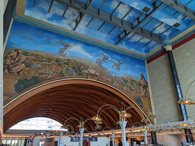 We had been pretty out of it when we arrived the night before, but before we left, I took a picture of the impressive mural in the lobby and restaurant area.